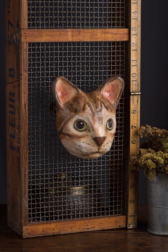Paper Mache Cat Head Wall Mount Home Decor Animal Head Etsy