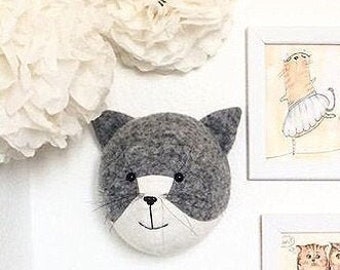 Gray Cat Stuffed Animal Faux Animal Head Animal Head Etsy