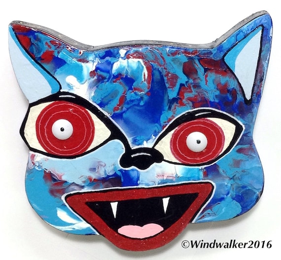 Outsider Folk Art Cat Head Crazy Happy Cat Comical Hand Etsy