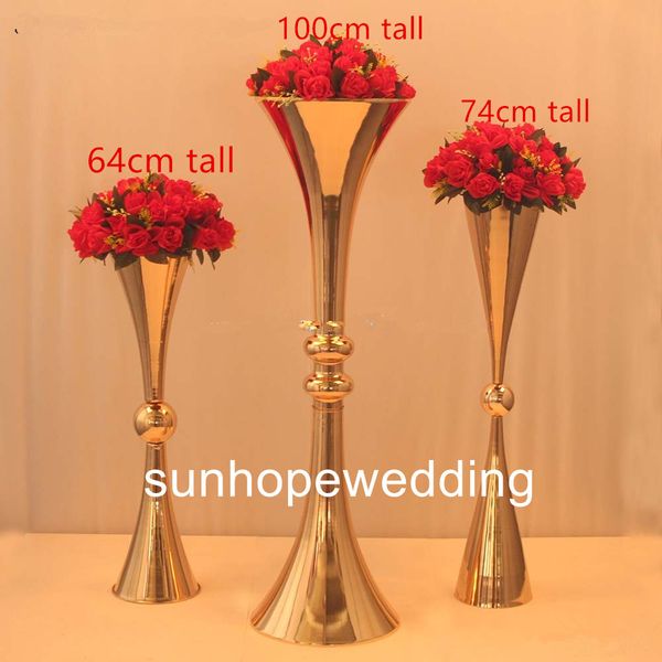 New Style Wedding Decorative Gold Metal Vase Centerpieces Trumpet