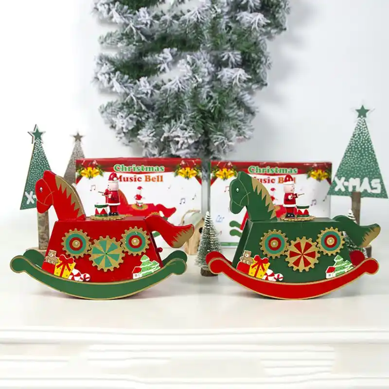 Wooden Music Box Painted Rocking Christmas Decoration Horse