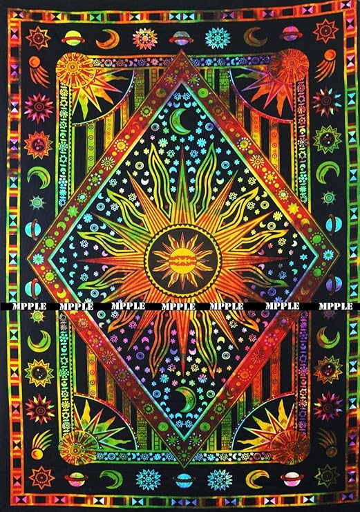 Firey Sun And Moon Cotton Bedspread 60 X 90 Inch Wall Hanging