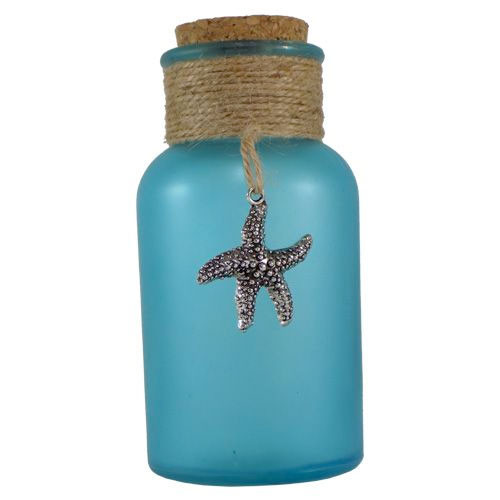 Frosted Blue Round Glass Bottle With Starfish Coastal Wedding