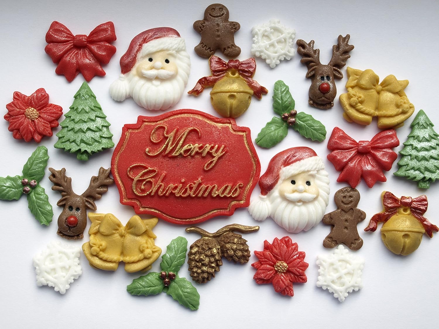 Christmas Edible Cupcake Cake Toppers Fondant Merry Christmas