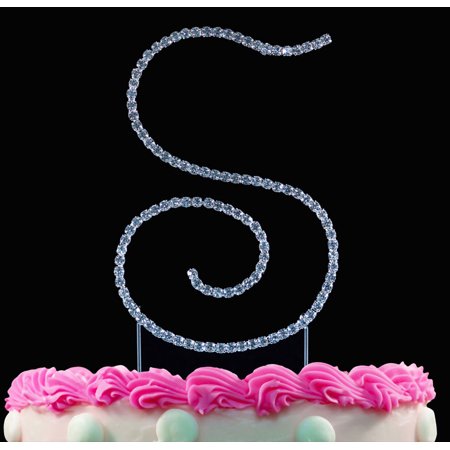 Yacanna Swirl Design Crystal Monogram Cake Toppers Silver Cake