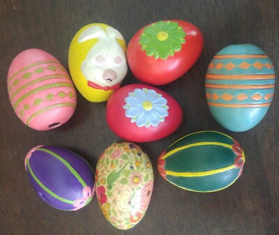 Vintage Lot Of 8 Hand Painted Ceramic And Wood Easter Eggs Ebay