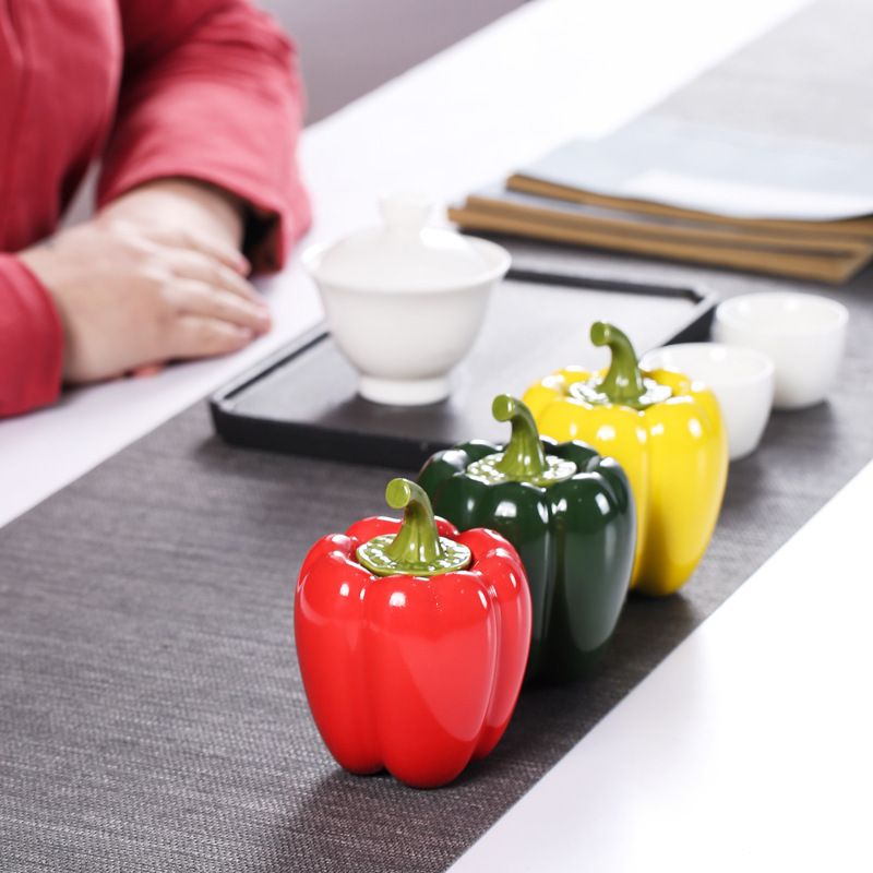 2020 Simulation Green Pepper Ceramic Pot Kitchen Seasoning Jar