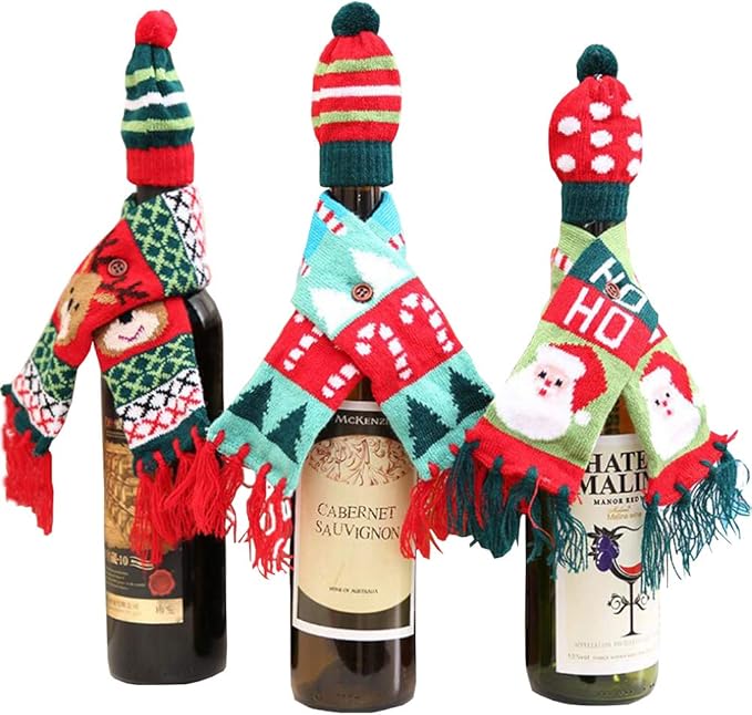 Amazon Com Christmas Holiday Wine Bottle Cover Set Wine Bottle