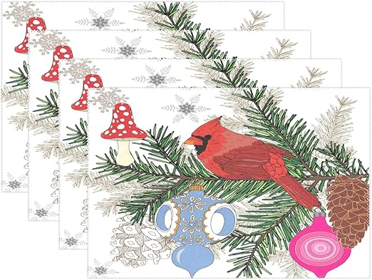 Amazon Com Winter Christmas Bird Cardinal Place Mats Tablemats
