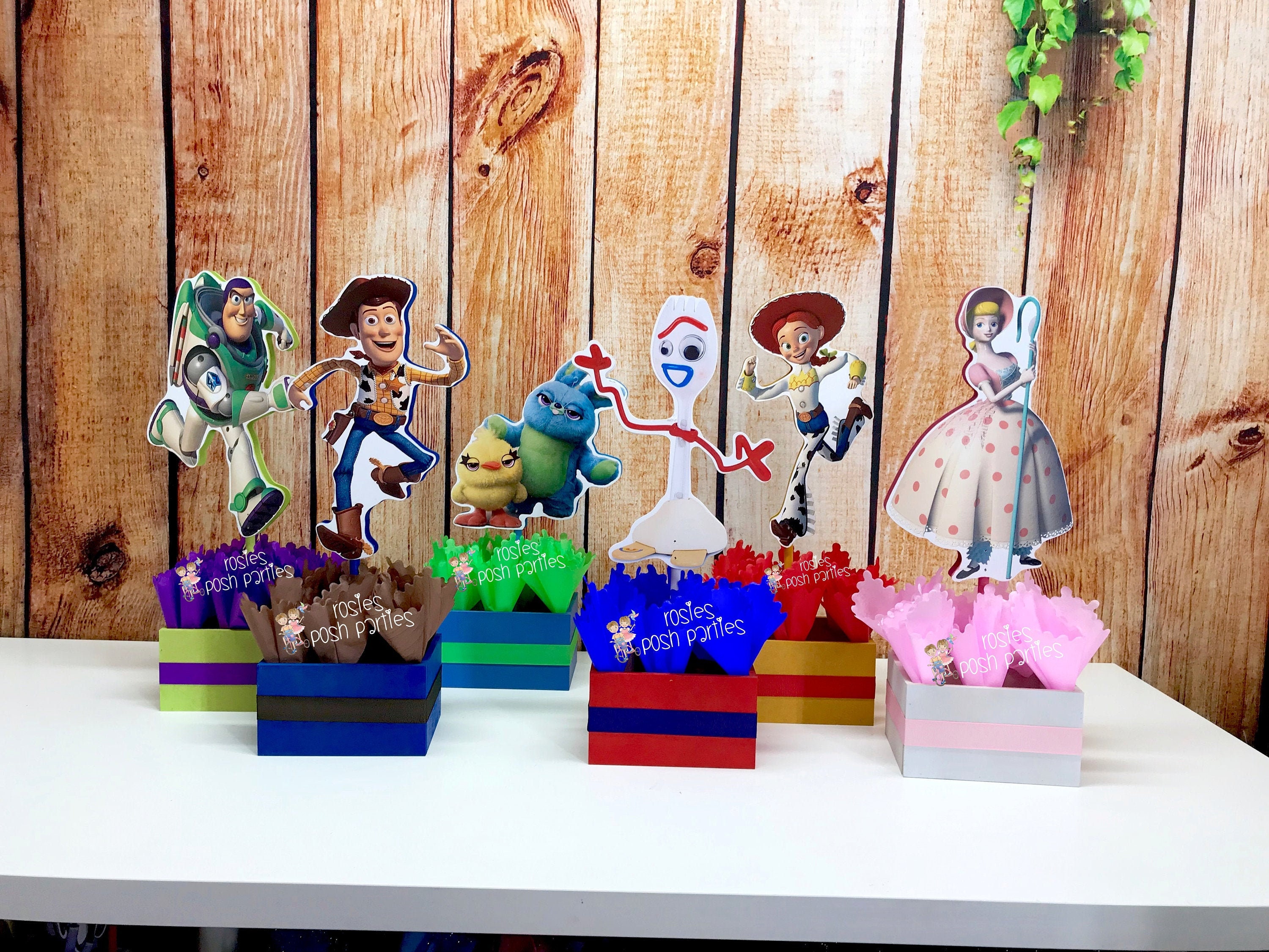 Toy story birthday centerpiece toy story party buzz lightyear woody and jessie wood table centerpiece on base for birthday set of 6 rosiesposhparties 5 out of 5 stars 4645 10200.