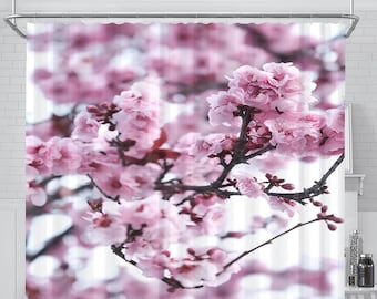 Shower Curtain Cherry Blossom Cherry Blossom Decor Mint Etsy