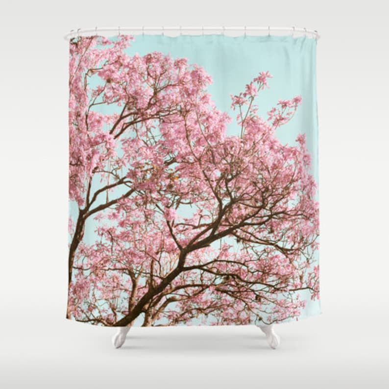 Cherry Blossom Photo Shower Curtain Pastel Blue Pink Flower Etsy
