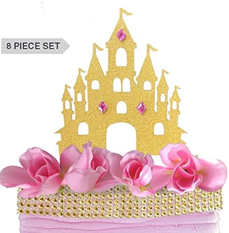 Castle Princess Cake Topper Decoration Set Kit Gold Pink Roses