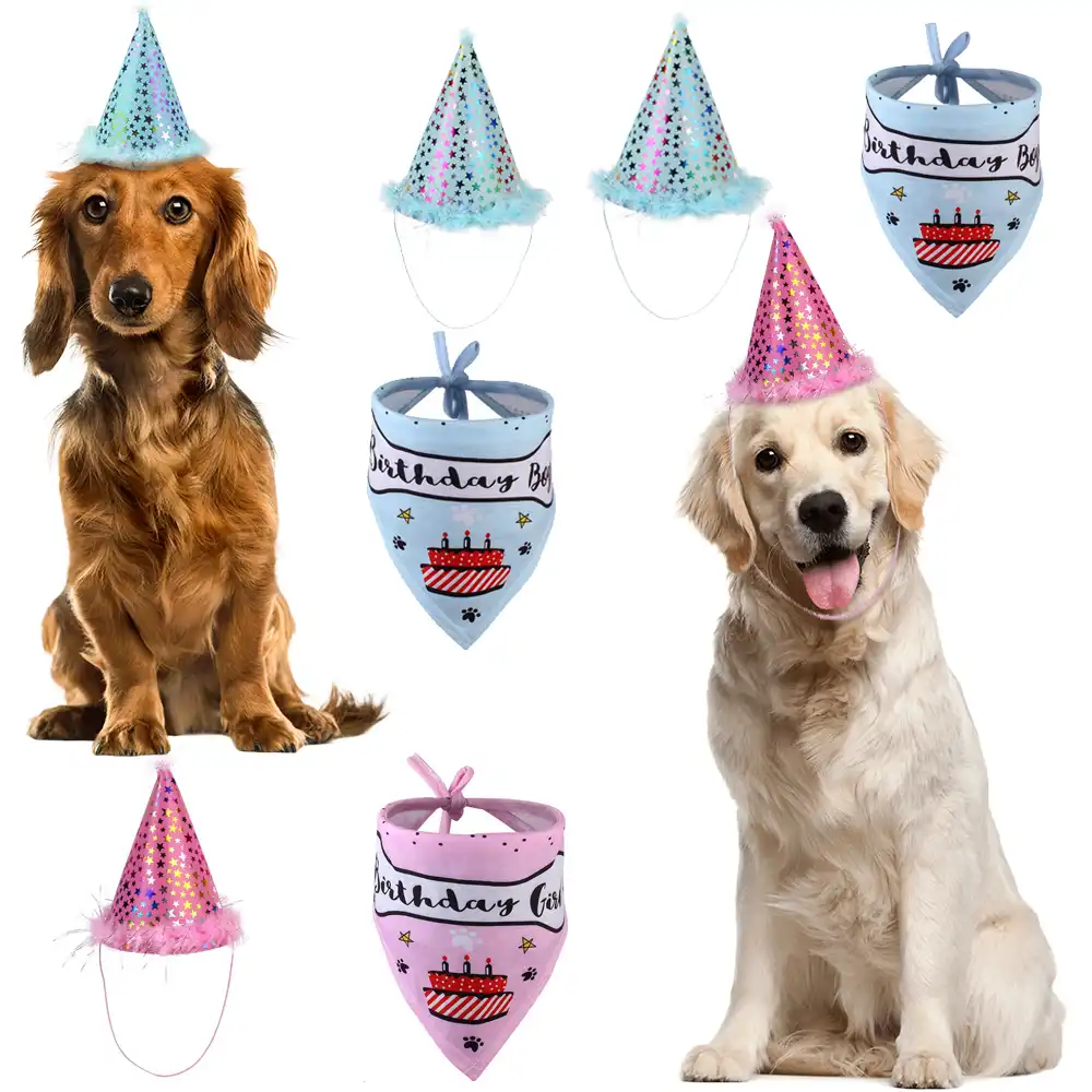 2pcs Set Pet Birthday Hat Crown With Bibs Cat Dog Birthday Costume