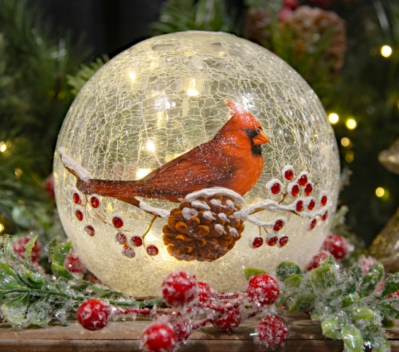 Lighted Crackle Glass Cardinal 6 Inch Battery Operated