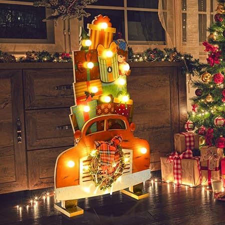 Amazon Com Juegoal Christmas Lighted Gift Box Car Shape Wooden