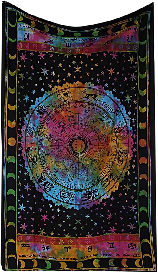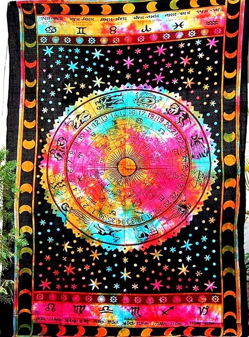 Amazon Com Jaipur Handloom Multi Tie Dye Zodiac Tapestry Wall