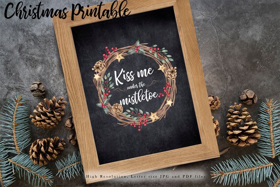 Kiss Me Under The Mistletoe Christmas Printable Home Decor Instant