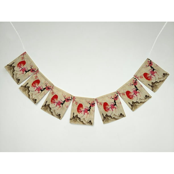 Gckg Landscape Japanese Sakura Cherry Blossom Moon Banner Bunting