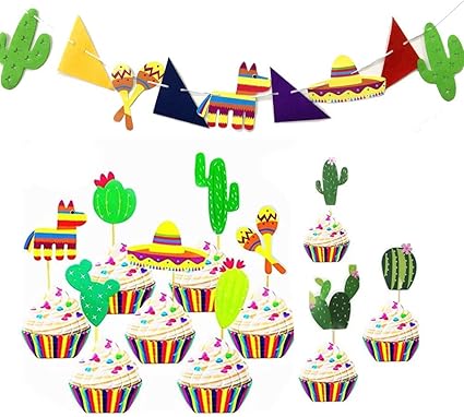 Amazon Com Llgltec Mexican Cupcake Toppers Mexican Fiesta Party