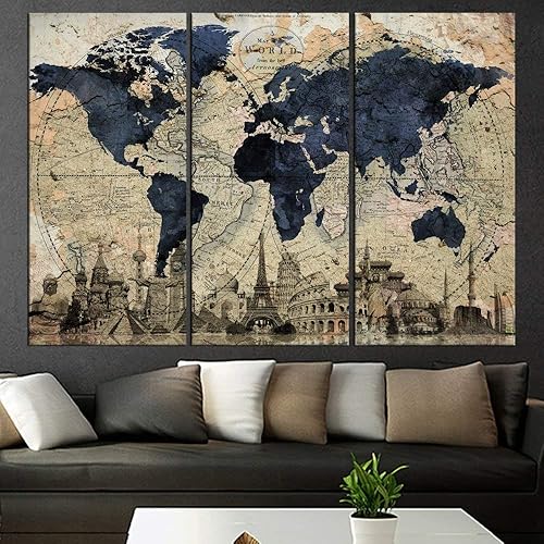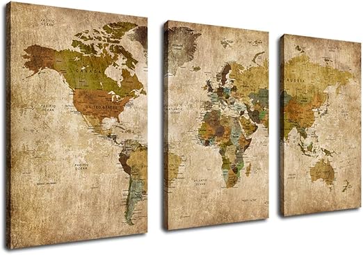 Amazon Com Vintage Canvas Wall Art World Map Picture For Living