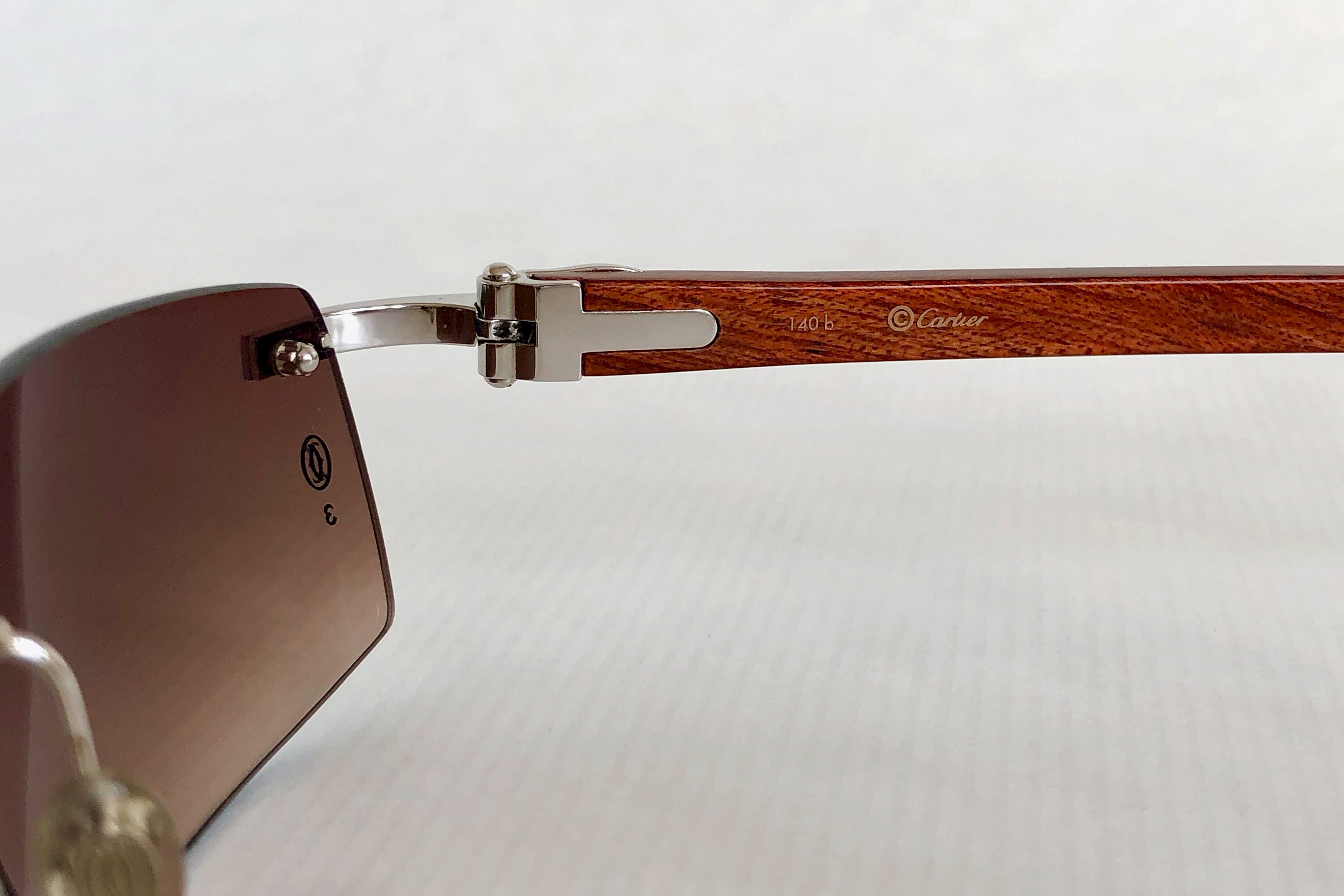 140b C Decor Rimless Bubinga Wood Sunglasses Cartier
