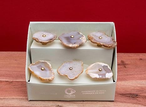 Casa Decor Of Set Of 6 White Luxurious Agate Stone Knob With