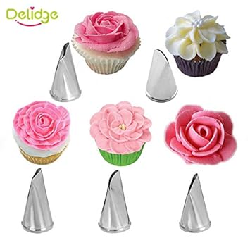 Delidge 5pcs Set Rose Petal Metal Cream Tips Cake Decorating Tools