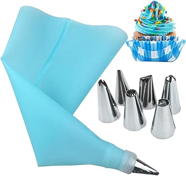 Haifly Reusable Silicone Icing Piping Bag Stainless Steel Nozzle