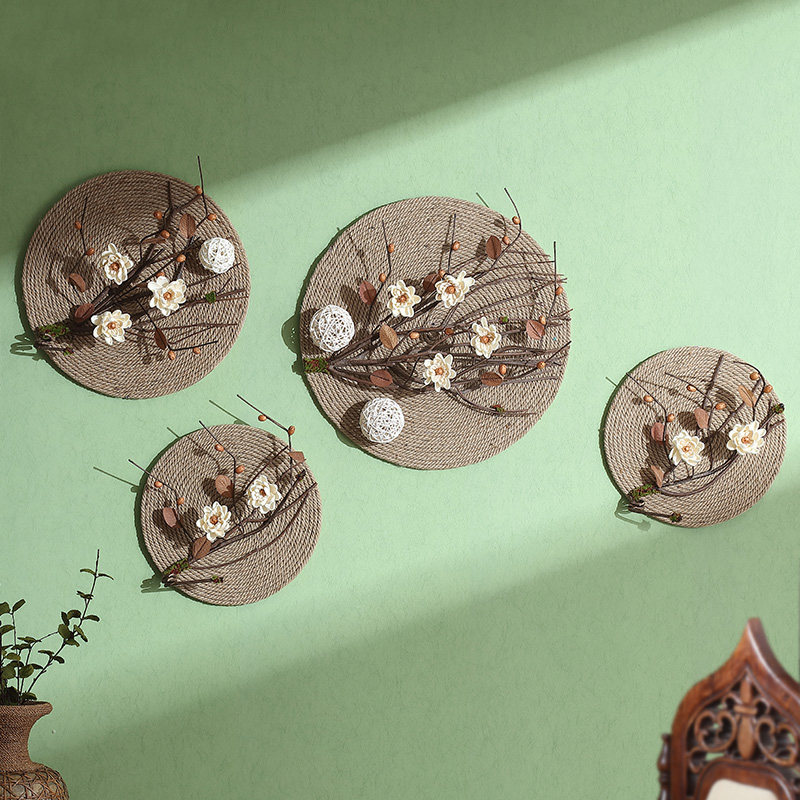 Southeast Asia Hemp Rope Dried Flowers Zen Wall Hanging Wall