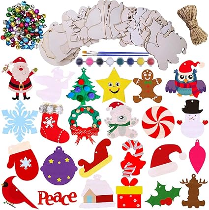Amazon Com Winlyn 24 Wooden Christmas Ornaments Crafts Kit Kids