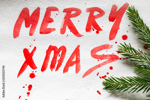 Christmas Decor The Inscription Merry Xmas Red Paint Is Written