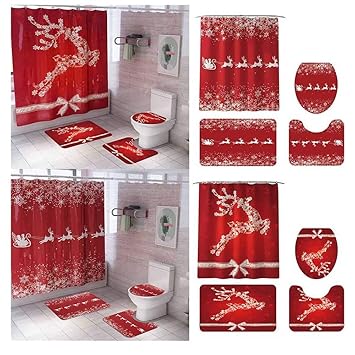 Amazon Com Hamkaw Merry Christmas Shower Curtain Sets 4 Pcs Xmas