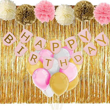 Pink And Gold Birthday Decorations With Banner Balloons Tissue